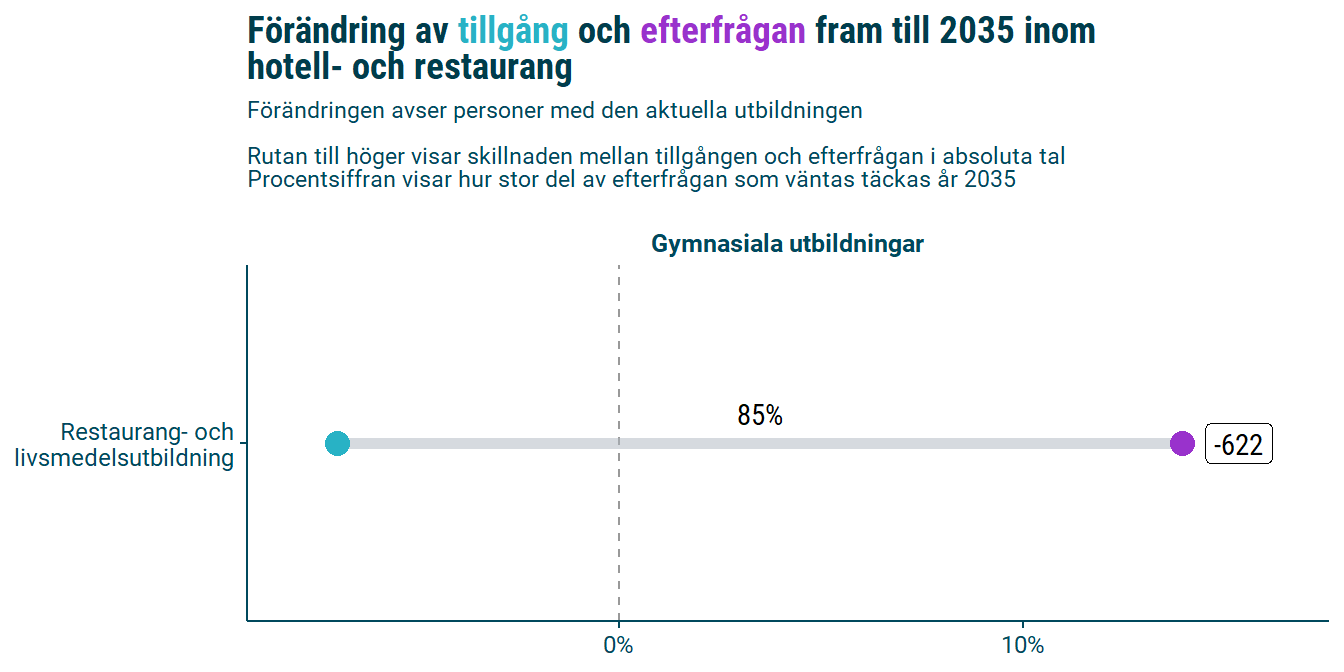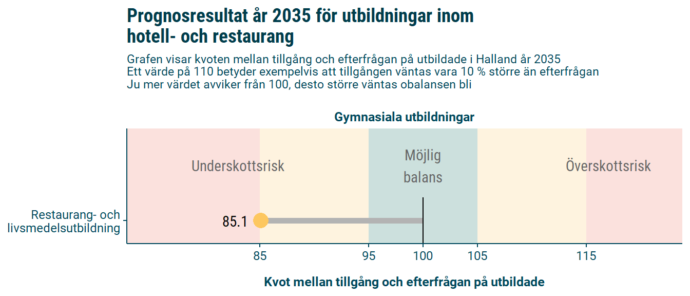 2035 bedöms det finnas risk för brist på personer med gymnasial restaurang- och livsmedelsutbildning.