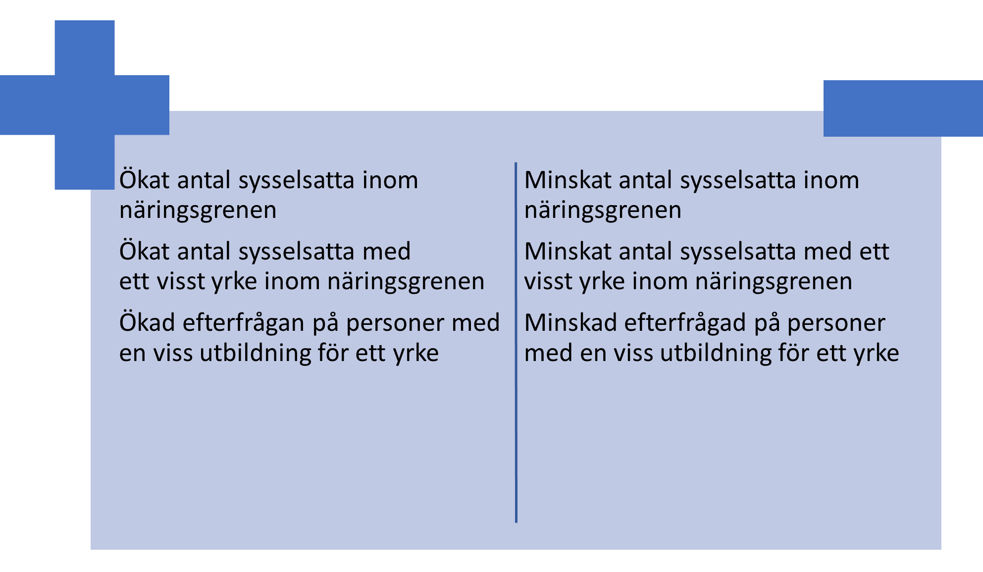 Ovan innebär att efterfrågan på en viss utbildningsgrupp i en region kan förändras genom tre olika komponenter som redovisas i modellen nedanför.
